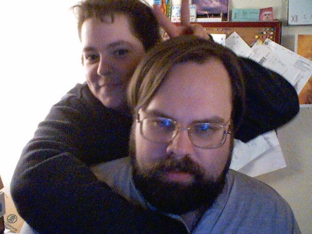 This is an old picture of Jef & I, but we haven't changed much. :) This was taken in 2001, just after we moved into our house.